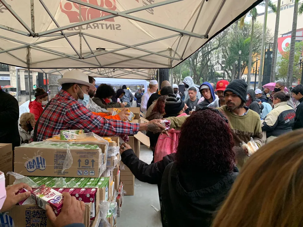 Como parte das mobilizações nacionais do Grito dos Excluídos, que traz como lema “200 anos de (in)dependência para quem?”, manifestantes estão distribuindo na manhã desta quarta-feira (7) café da manhã para 5 mil pessoas em situação de rua na Praça da Sé, no Centro da capital paulista, em tendas montadas no local. Também fizeram a distribuição 5 toneladas de alimentos no Morro dos Prazeres, em Santa Teresa, no Rio. Os atos de doação se reproduzem em todo o país.