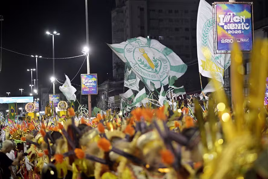 Neste ano, a Acadêmicos de Santa Cruz levou para a avenida o enredo “Brasil de Mil Faces em um Só Coração”. A proposta fez uma viagem pela formação do país, desde o período em que o território era habitado por diferentes povos indígenas, como guaranis, tupinambás e carajás, passando pela chegada dos europeus e o processo de colonização até os dias atuais.