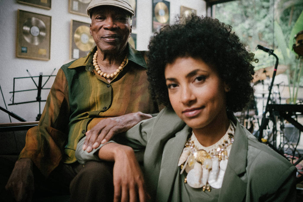 Milton Nascimento e Esperanza Spalding durante ensaio fotográfico