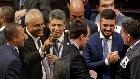 Os dois lados admitiam ontem que a votação pode ser apertada até porque a esquerda — fiel da balança nessa disputa — está fazendo mistério. As bancadas do PSOL e do PT devem fechar questão no último minuto. O PSD anunciou apoio à chapa alternativa com cinco nomes, mas o deputado Munir Neto votará em Bacellar. A guerra por votos teve até adesivaço. Bacellar colava um “santinho” com seu nome nos ternos dos aliados durante a posse. Também teve claque nas galerias.