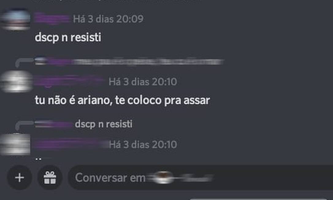 Foi em um grupo no aplicativo Discord, usado geralmente para games, que José Evaristo escreveu a um colega de sala de aula: “tu não é ariano, te coloco pra assar”. Antes, ele havia mandado uma mensagem em que dizia “faço saudação nazista e te mando se ‘concentrar’”, supostamente em alusão a campos de concentração.