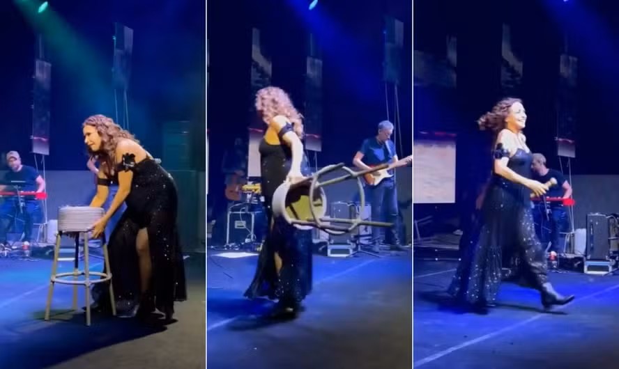Um show de Daniela Mercury neste sábado (14) deu o que falar nas redes sociais. Na apresentação, realizada no Casacor Bahia 2024, em Salvador, a cantora baiana arremessou um banco que estava no palco para ficar com o espaço livre para se apresentar.