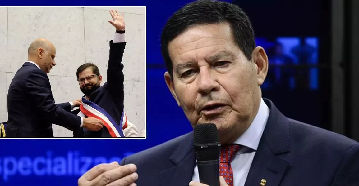 O vice-presidente da República, general Hamilton Mourão (Republicanos) abandonou uma entrevista após a posse do presidente do Chile, Gabriel Boric, nesta sexta-feira (11), realizada no Senado chileno.