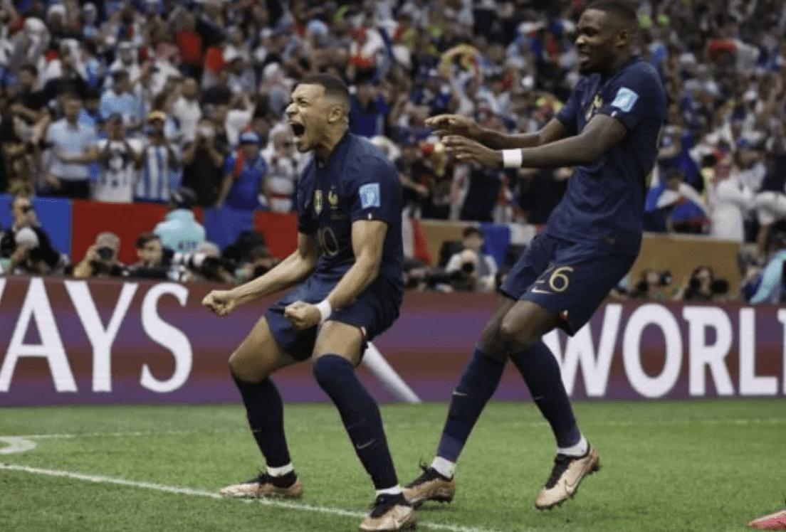 A segunda etapa da partida esquentou o clima no estádio Lusail. França ganhou um pênalti e Mbappé diminui a vantagem argentina após converter a cobrança. Em seguida, Kylian Mbappé marcou de novo e empatou o placar, levando o jogo para a prorrogação.