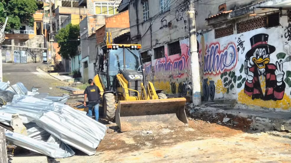 Imagens registradas durante a ação mostram a retroescavadeira utilizada para derrubar a construção. O ponto de venda funcionava de forma ostensiva, com sinalização exposta à rua. Segundo a corporação, a demolição integra o esforço para enfraquecer a logística do tráfico na região.