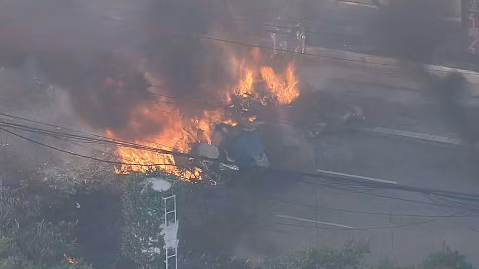 A queda aconteceu na Avenida Marquês de São Vicente, na altura do número 1.874, que está interditada. Com a explosão, uma grande nuvem de fumaça preta pôde ser vista à distância.