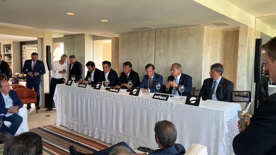 “Vocês têm que se defender! Os políticos se defendem, os delegados se defendem, o Ministério Público também”, exortou Bolsonaro a um grupo menor, ainda antes de pegar o microfone para discursar, no evento promovido pela associação Esfera Brasil na casa de seu fundador, João Camargo.