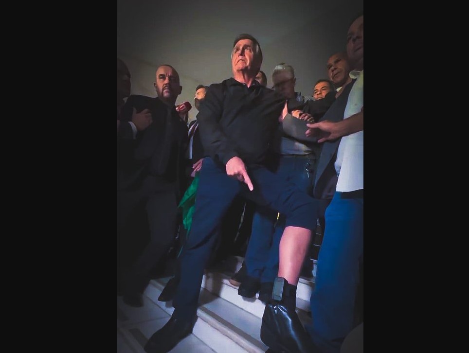 “Não roubei cofres públicos, não matei ninguém, não trafiquei ninguém. Isso é o símbolo da máxima humilhação do nosso país. Uma pessoa inocente”, declarou Bolsonaro, mostrando a tornozeleira à imprensa.