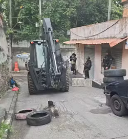 Segundo a PM, os agentes estão focados na remoção de barricadas nos acessos aos morros da Mangueira e do Tuiuti.