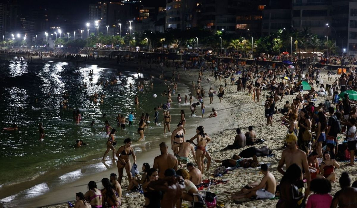 As altas temperaturas registradas no Rio de Janeiro levaram moradores e turistas a ocupar a Praia do Arpoador, na Zona Sul, na noite desta segunda-feira (22). Com o termômetro atingindo 36 Cº, banhistas buscaram alívio no mar fora do horário tradicional de praia.