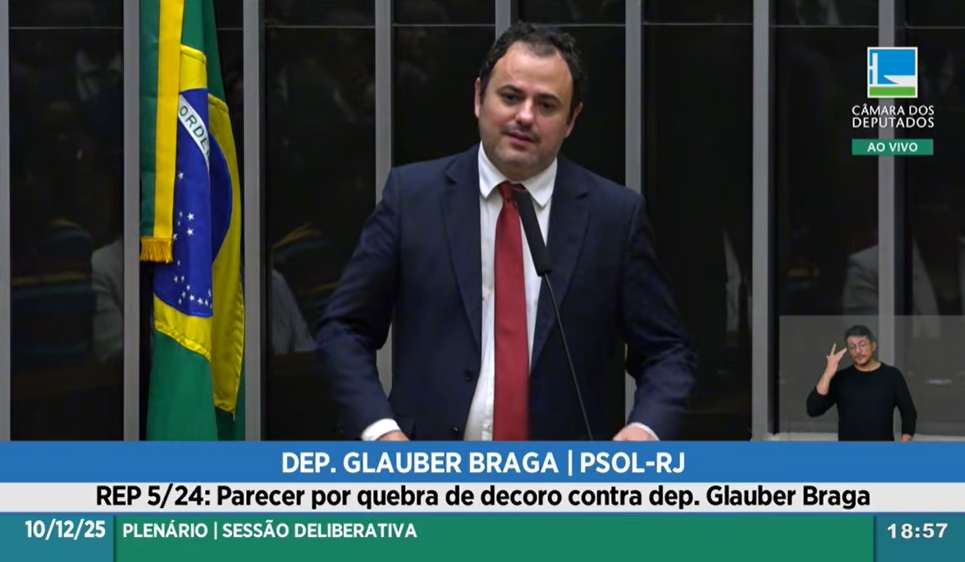 A Câmara dos Deputados decidiu na noite desta quarta-feira (10), aplicar suspensão de seis meses de mandato do deputado federal Glauber Braga (PSol-RJ). Em uma sessão marcada por tensão e forte mobilização das bancadas, o plenário rejeitou a cassação do mandato do parlamentar e aprovou um texto substitutivo aprovado minutos antes da votação principal que propos a suspensão de seis meses do mandato de Glauber.