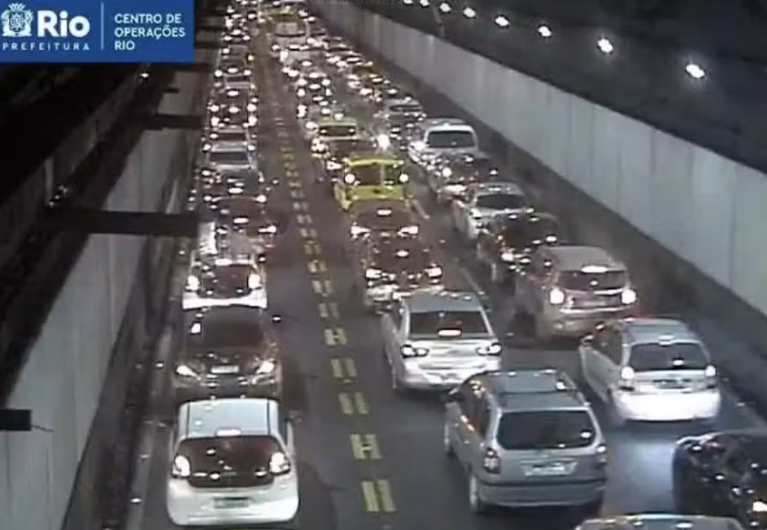 Segundo o Centro de Operações do Rio (Cor), os motoristas devem optar pelo Túnel Santa Bárbara. O trânsito segue congestionado na via e agentes atuam no local.