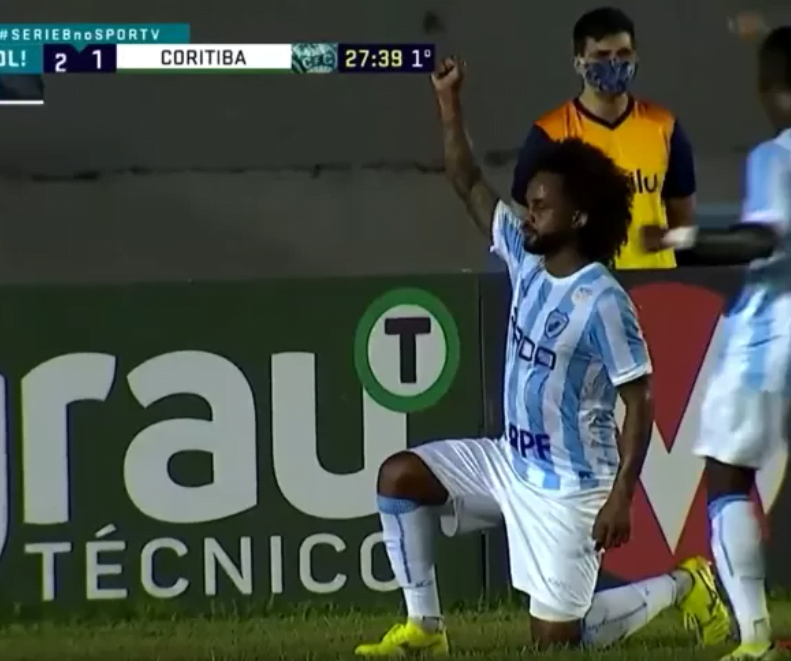 Antes do início da partida, praticamente todos os jogadores, tanto do Londrina quanto do Coritiba, fizeram o mesmo gesto de protesto, de joelhos, punho direito fechado e erguido.