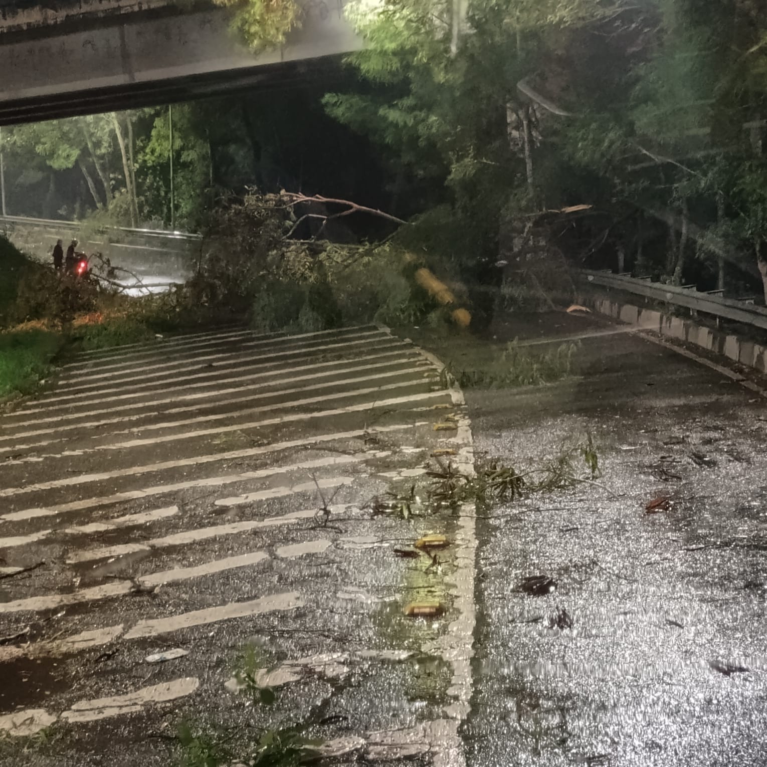 Após o temporal, a Comlurb foi acionada na Mará devido à queda de uma árvore sobre a via Brigadeiro Trompowski, no sentido Ilha, na altura da Ponte Velh.