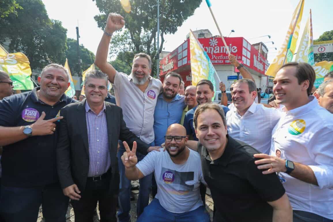 Inúmeros vereadores, deputados e lideranças históricas da região fizeram questão de prestigiar Castro, que estava do lado de seu vice na chapa, Washington Reis (MDB).