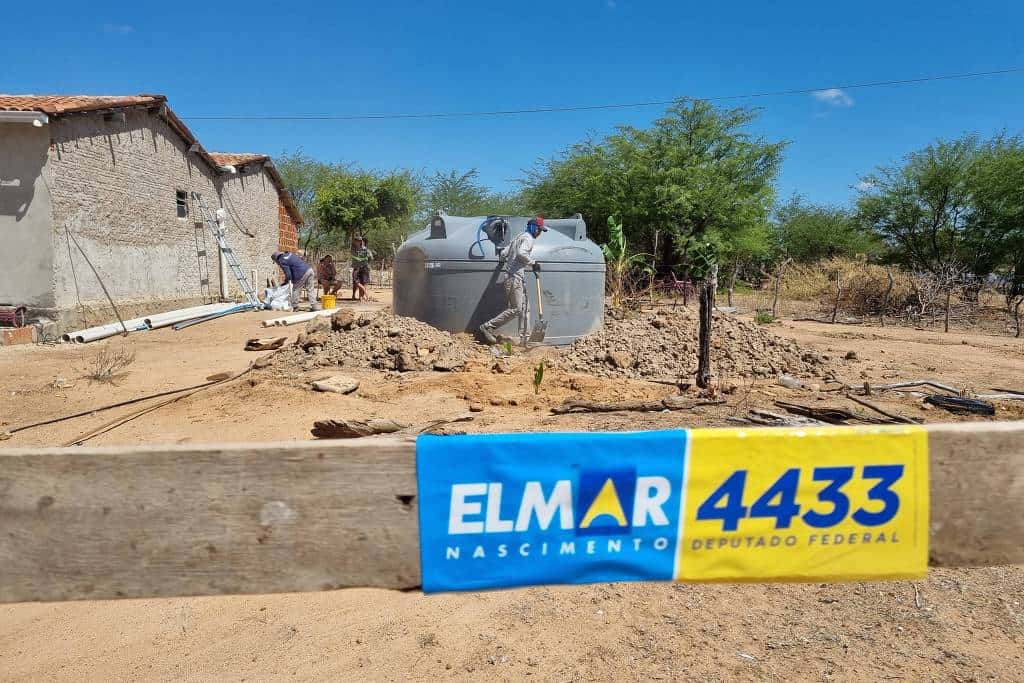 A entrega e a instalação dos reservatórios em casas que traziam adesivo de campanha de Elmar ocorreram na quarta (28) e quinta-feira (29), em povoados do distrito de Pinhões, na zona rural de Juazeiro.