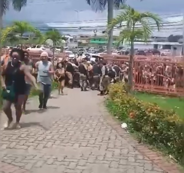 Guardas municipais tentaram conter os manifestantes, que, revoltados pelo atraso e pela falta de informação, ameaçam promover um quebra-quebra no prédio. Foram chamados reforços da Polícia Militar para dissolver a manifestação.
