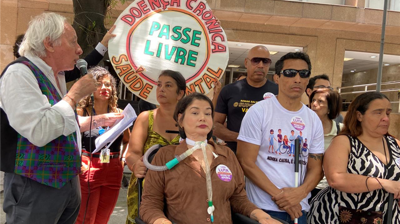 A Comissão do Cumpra-se da Assembleia Legislativa do Rio de Janeiro (Alerj), realizou nesta segunda-feira (27/11), em frente ao Tribunal de Justiça, no Centro, uma ação afirmativa pelo cumprimento da Lei do Passe Livre e Vale Social, que dá acesso ao transporte público gratuito para pessoas com deficiência. A iniciativa contou com a parceria da Comissão dos Direitos das Pessoas com Deficiências da Câmara Municipal do Rio.