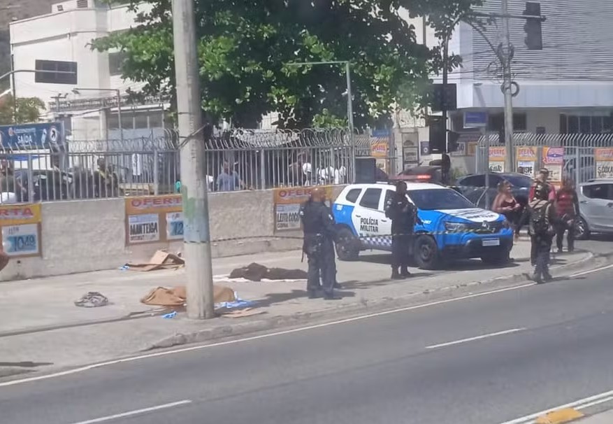 Segundo testemunhas, os corpos foram deixados separadamente na esquina com a Rua Capitão Menezes, ponto de grande circulação de pedestres e veículos, próximo à estação do BRT. A movimentação na área parou diante do crime, que chamou a atenção pela forma como as vítimas foram expostas em plena via pública.
