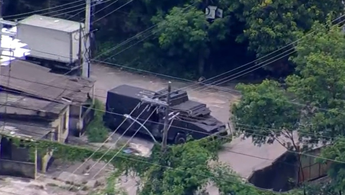 Após roubo de carga frustrado nesta quarta-feira (11) na Avenida Pastor Martin Luther King Jr, criminosos trocaram tiros com policiais militares e usaram um ônibus para obstruir um dos acessos ao Complexo da Pedreira, na Zona Norte do Rio.