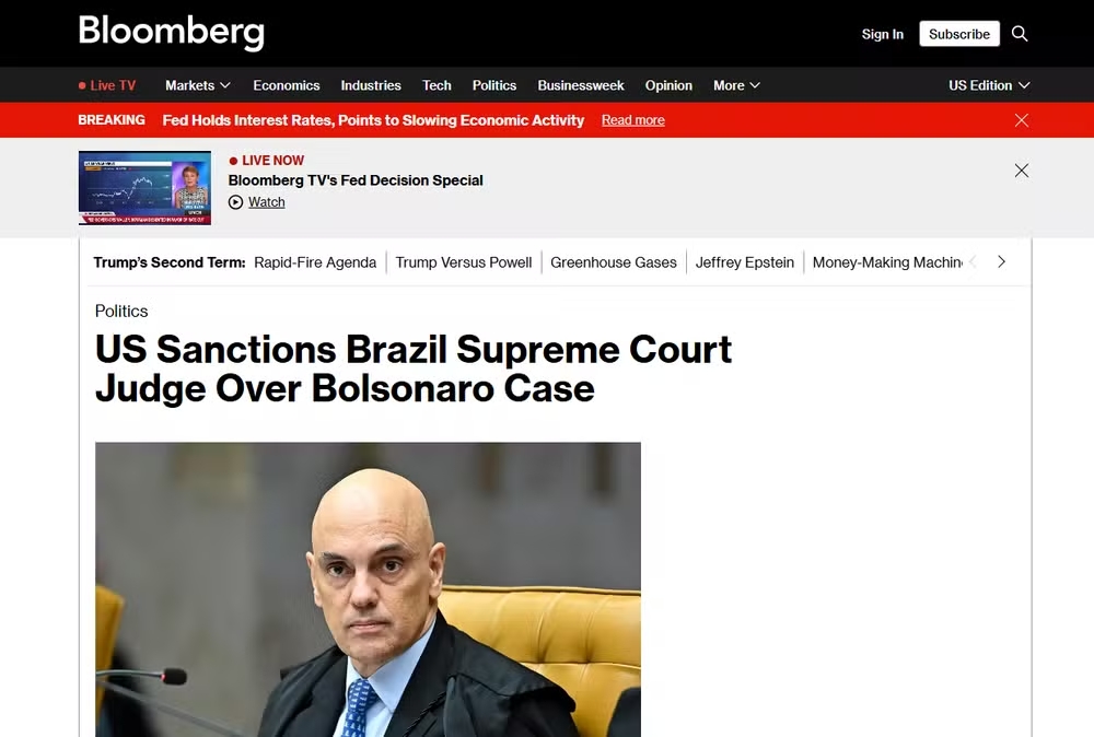 A sanção imposta pelos Estados Unidos ao ministro Alexandre de Moraes, do Supremo Tribunal Federal (STF), gerou forte repercussão na imprensa internacional e agravou a tensão diplomática entre o governo de Luiz Inácio Lula da Silva e a administração do presidente norte-americano Donald Trump. A medida, aplicada com base na Lei Magnitsky, foi vista como um novo capítulo da crescente guerra comercial e política entre os dois países.