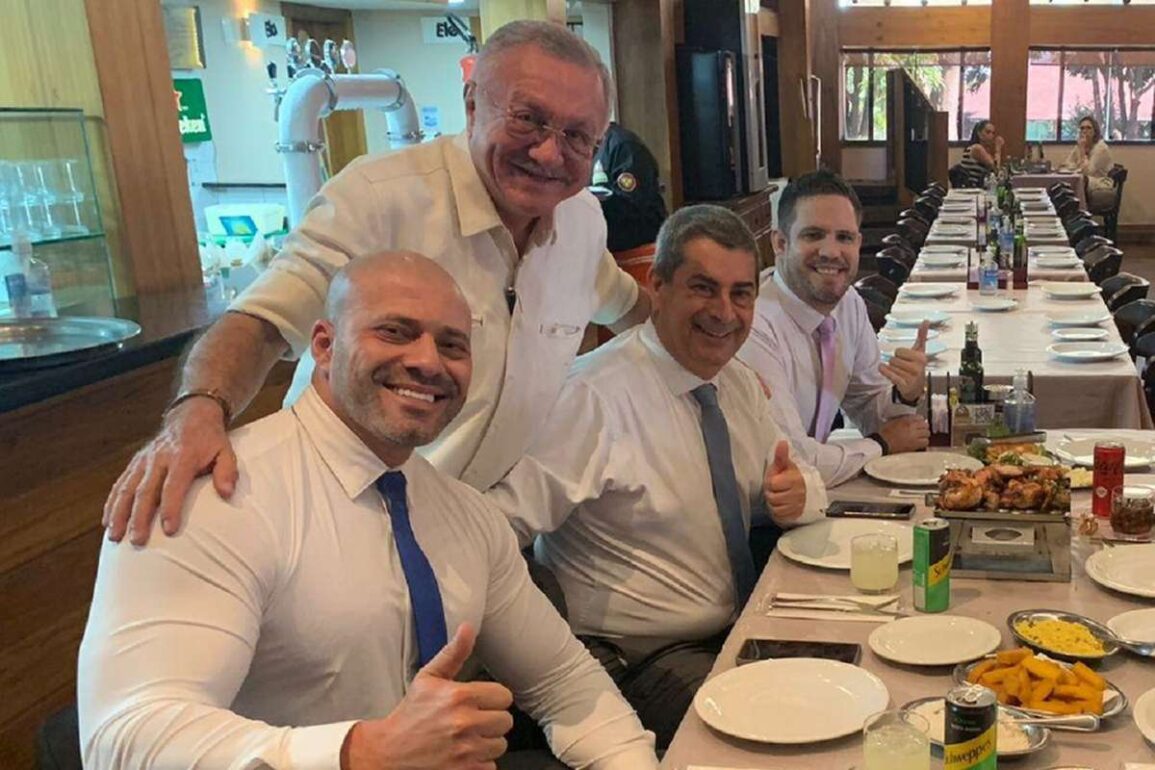 Do Congresso, ele seguiu com um grupo de parlamentares bolsonaristas para um almoço em uma galeteria de Brasília, um deles o Coronel Tadeu (PL-SP).