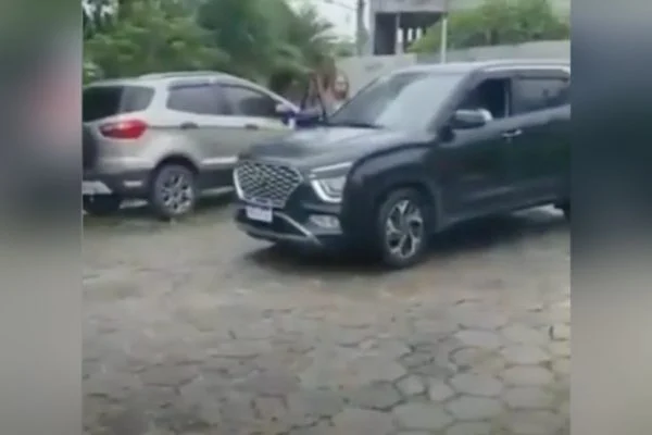 A mulher, por sua vez, segundo os relatos, pediu que o veículo fosse retirado da entrada da residência, o que não foi prontamente atendido pelos entregadores.