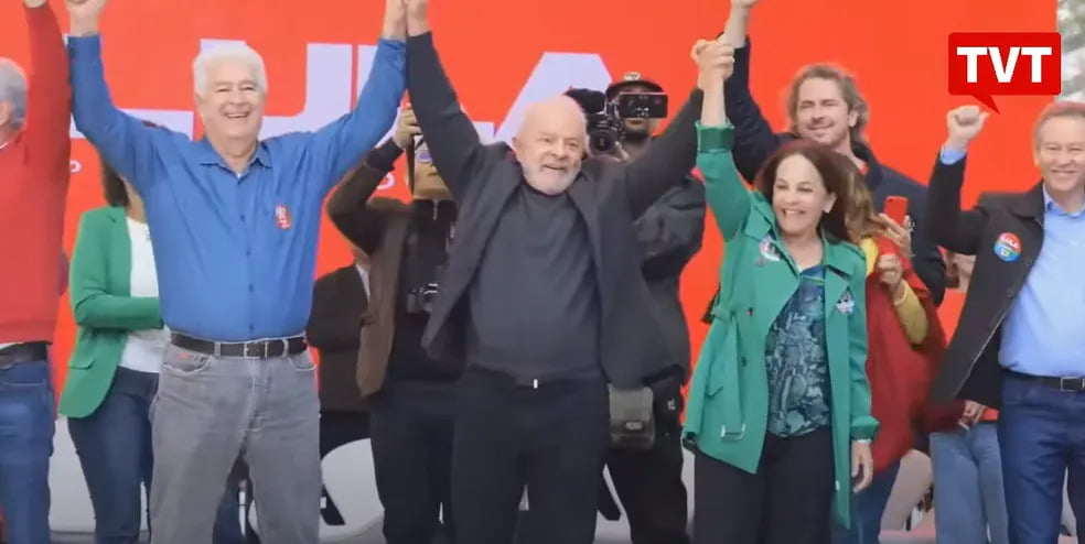 Lula foi ao comício acompanhado de aliados como a ex-presidente Dilma Rousseff, o ex-governador do Paraná e candidato do PT ao Palácio Iguaçu, Roberto Requião e a presidente nacional do partido e candidata a deputada federal, Gleisi Hoffmann.
