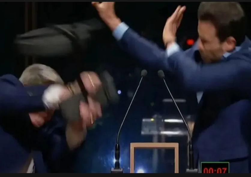 O incidente ocorreu no quarto bloco do debate, quando Marçal provocou Datena mencionando uma acusação de assédio sexual contra o apresentador. Além disso, Marçal chamou Datena de “arregão” e insinuou que ele “não seria homem” para lhe dar um tapa, referindo-se a um episódio anterior no debate da TV Gazeta/MyNews.