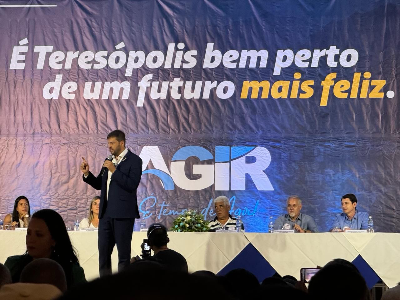 O deputado estadual Júlio Rocha é o pré-candidato do Agir na disputa pela prefeitura de Teresópolis, na Região Serrana do estado. O lançamento do seu nome aconteceu na última segunda-feira (11), no hotel Higino. Apesar de ter base eleitoral em Guapimirim, o parlamentar escolheu disputar na cidade vizinha para não concorrer com sua irmã, Marina Rocha, que é prefeita de Guapimirim e pretende concorrer à reeleição.