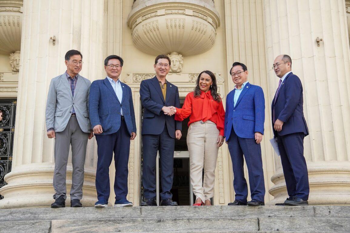 Deputados da Coreia do Sul, junto com o cônsul Insang Hwang, estiveram no Palácio Tiradentes, na Assembleia Legislativo do Rio (Alerj), nesta terça-feira (01/08), para estreitar relações com o Parlamento fluminense. A comitiva foi recebida pela 2ª vice-presidente da Assembleia, deputada Tia Ju (REP), que propôs a inclusão de duas datas comemorativas coreanas no calendário do estado.