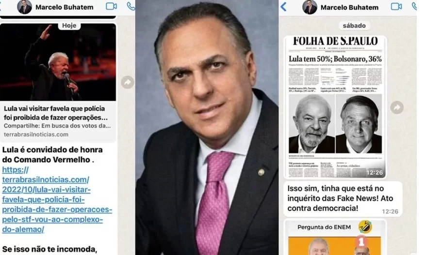 Também compartilhou uma pesquisa eleitoral divulgada na imprensa antes do primeiro turno das eleições presidenciais que dava vitória a Lula, e disse: “Isso sim tinha que estar no inquérito das fake news! Ato contra a democracia!”
