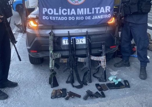 Com o grupo, os policiais apreenderam quatro fuzis, duas pistolas, oito carregadores e uma quantidade de drogas. A Polícia Militar informou que o patrulhamento foi reforçado na região.