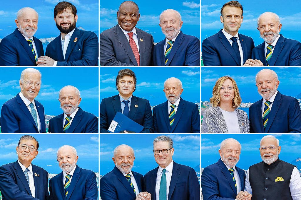 Por outro lado, o cumprimento de Lula com o presidente francês, Emmanuel Macron, foi caloroso. Lula também recebeu outros líderes, como o primeiro-ministro indiano, Narendra Modi; o presidente da Turquia, Recep Tayyip Erdogan; a primeira-ministra italiana, Giorgia Meloni; e o presidente chinês, Xi Jinping. Também saudou de maneira amistosa o presidente da União Africana, Mohamed Ould Cheikh aI-Ghazouani, cujo bloco participa pela primeira vez do G20; e o presidente da África do Sul, Cyril Ramaphosa, que irá suceder ao Brasil na presidência do grupo em 2025.