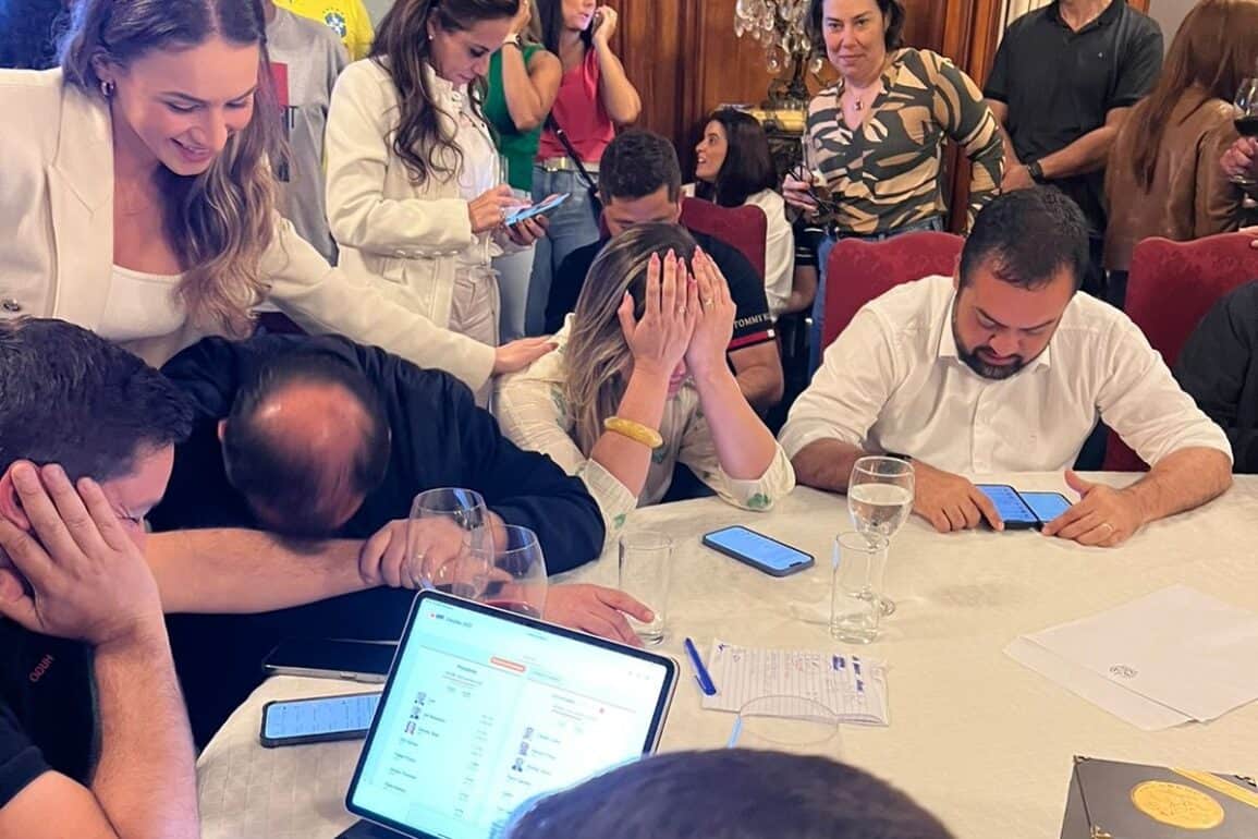 Houve gritos e choro nos salões do Palácio Laranjeiras no momento em que o Datafolha projetou a vitória de Cláudio Castro no primeiro turno. No mesa onde o governador acompanhava minuto a minuto a apuração, viu-se uma explosão de emoções. A primeira-dama Analine Castro chorava, ao lado do governador que seguia de olho nos números, entorpecido pela súbita notícia de vitória antecipada.