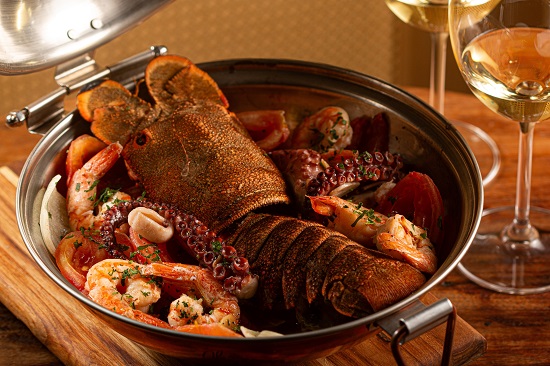 Entre os pratos principais, destaque para o arroz de pato, que serve até duas pessoas, coroado com a coxa confitada. Já o canelone de bacalhau vem com ricota, molho branco e azeite trufado, outra aposta do chef. Tradição portuguesa, a cataplana de frutos do mar é preparada com cavaca, peixe, camarão, lulas, polvo e “molho secreto” do chef. Outra novidade que pode ser compartihada por duas pessoas é o tomahawk suíno Duroc, peça de 600 gramas, com osso, acompanhada de guarnição à francesa, de batata palha, cebola, paio e ervilha, além de salada.