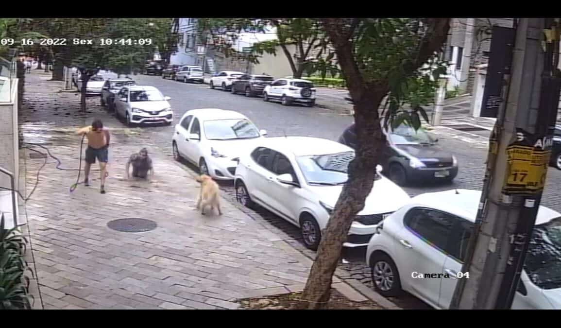 Um homem agrediu nesta sexta-feira (16) uma faxineira, de 50 anos, enquanto ela fazia a limpeza de uma calçada em frente a um prédio no bairro de Lourdes, região nobre de Belo Horizonte (MG).