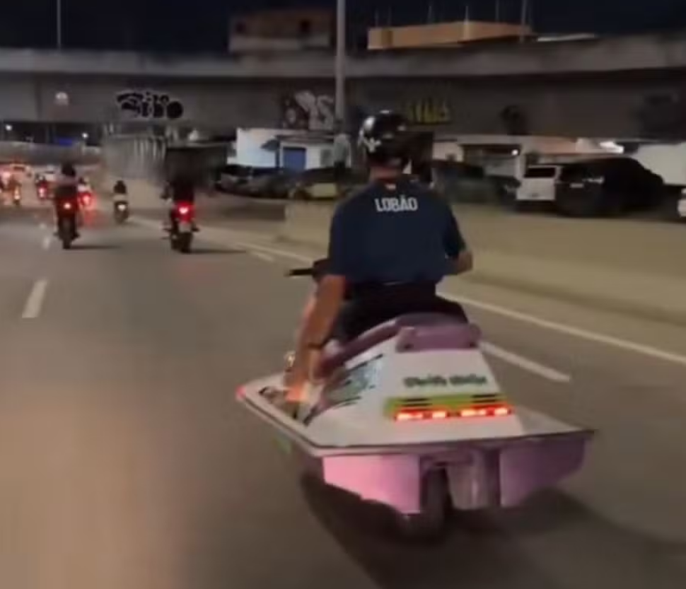 Nas imagens, o motociclista aparece correndo pela via com o veículo decorado, lembrando um jet ski. Procurada, a Polícia Militar afirmou que não foi acionada.