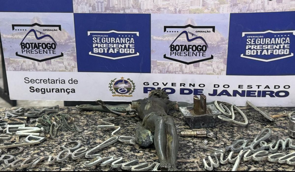 Na abordagem, os policiais encontraram uma imagem de Jesus em bronze, com os braços quebrados, além de outras peças também em bronze com inscrições religiosas. Logo em seguida, um funcionário do cemitério reconheceu o material e confirmou o furto.