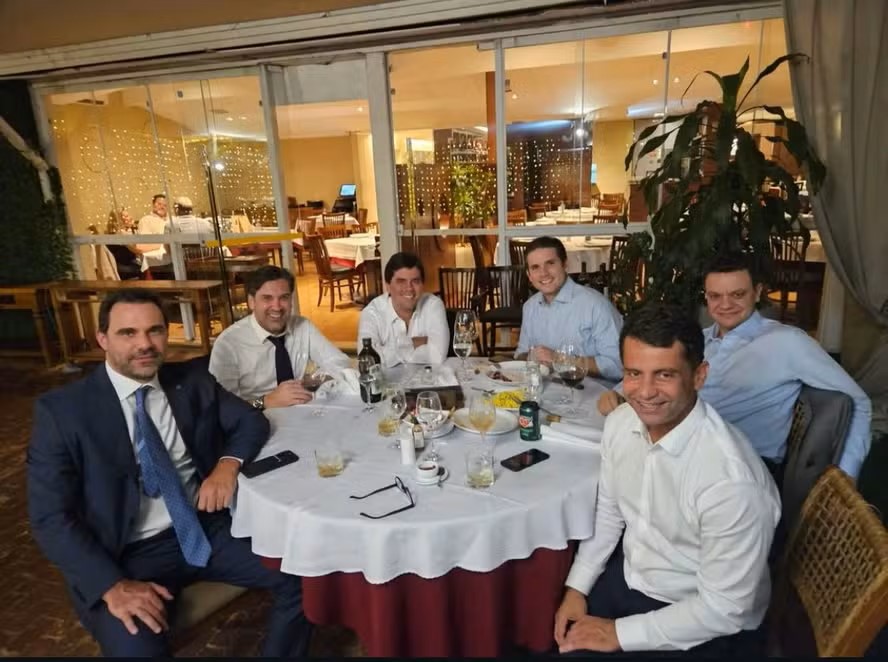 O jantar ocorreu no restaurante Dom Francisco, tradicional em Brasília, e a imagem foi divulgada pelo ministro Fufuca em sua página no Instagram.