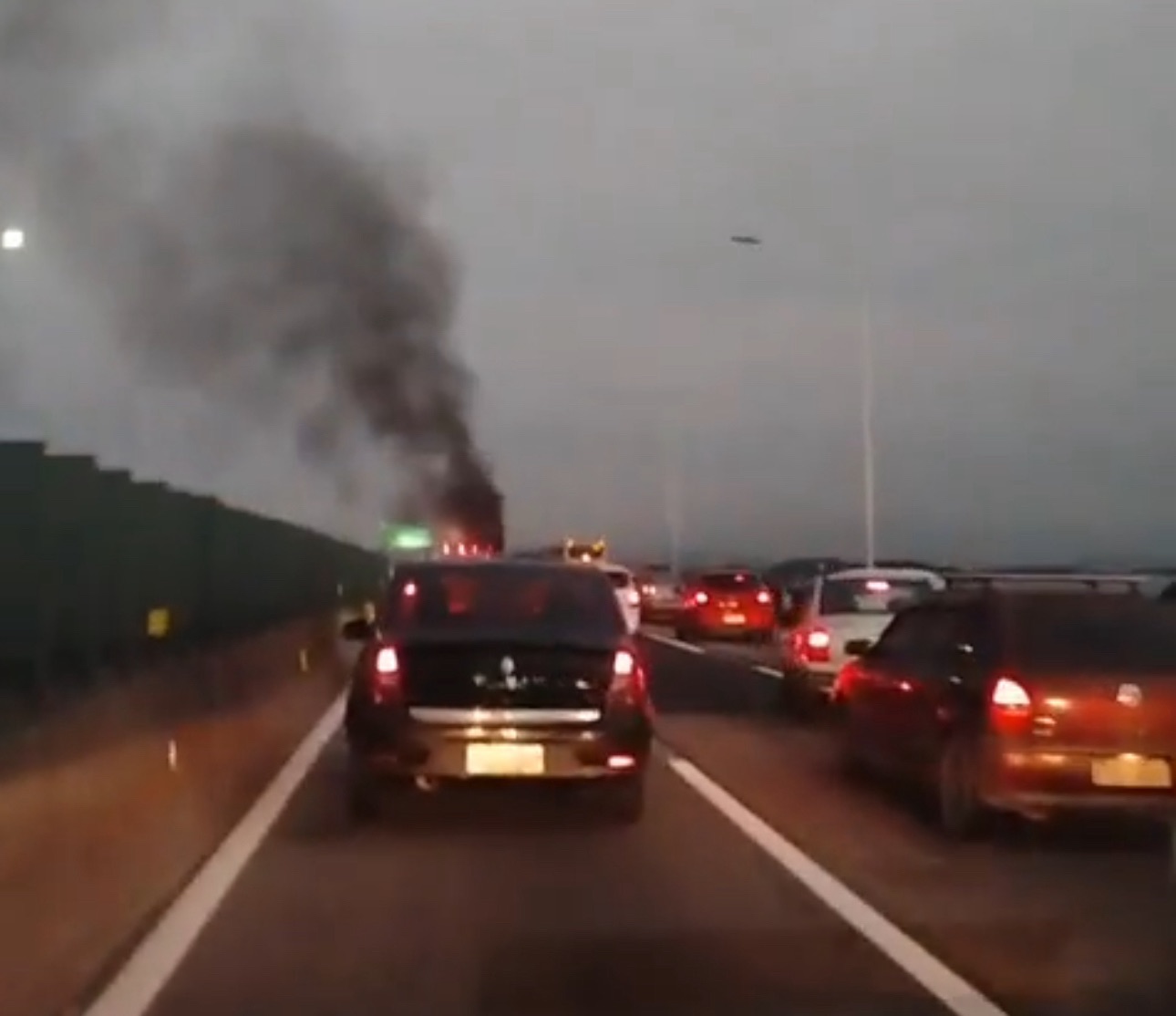 O acidente aconteceu por volta das 6h30, na altura da Grande Reta, e a via ficou totalmente bloqueada por cerca de 30 minutos.