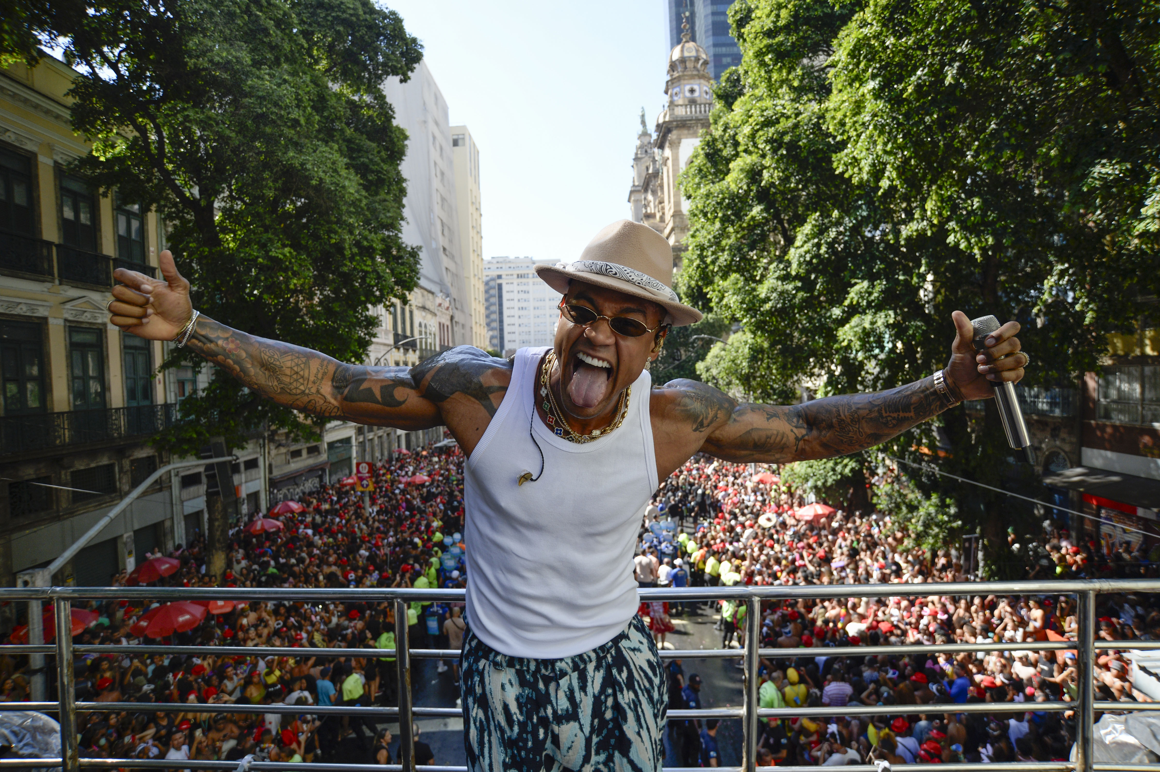 O cantor Léo Santana atrai uma multidão na manhã deste sábado (31) ao centro do Rio para o Bloco da Gold, no Circuito Preta Gil.