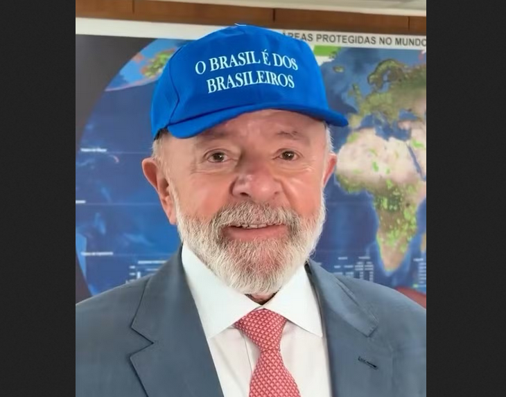 O presidente Luiz Inácio Lula da Silva publicou um vídeo utilizando o boné alvo de polêmica entre a base do governo e a oposição. O adereço azul com o slogan “O Brasil é dos brasileiros” visa fazer um contraponto ao boné da campanha de Donald Trump.