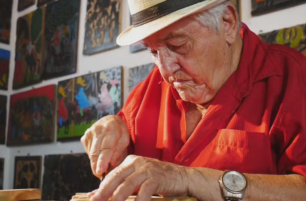 José Francisco Borges, conhecido como J. Borges, tem 88 anos e é pintor, cordelista, poeta, xilogravurista. Ele é natural de Bezerros, no Agreste de Pernambuco, e ganhou título de Patrimônio Vivo Imaterial de Pernambuco, além de ter sido agraciado com a Ordem do Mérito Cultural do Brasil em 1999. Já ilustrou obras de escritores como José Saramago e Eduardo Galeano.