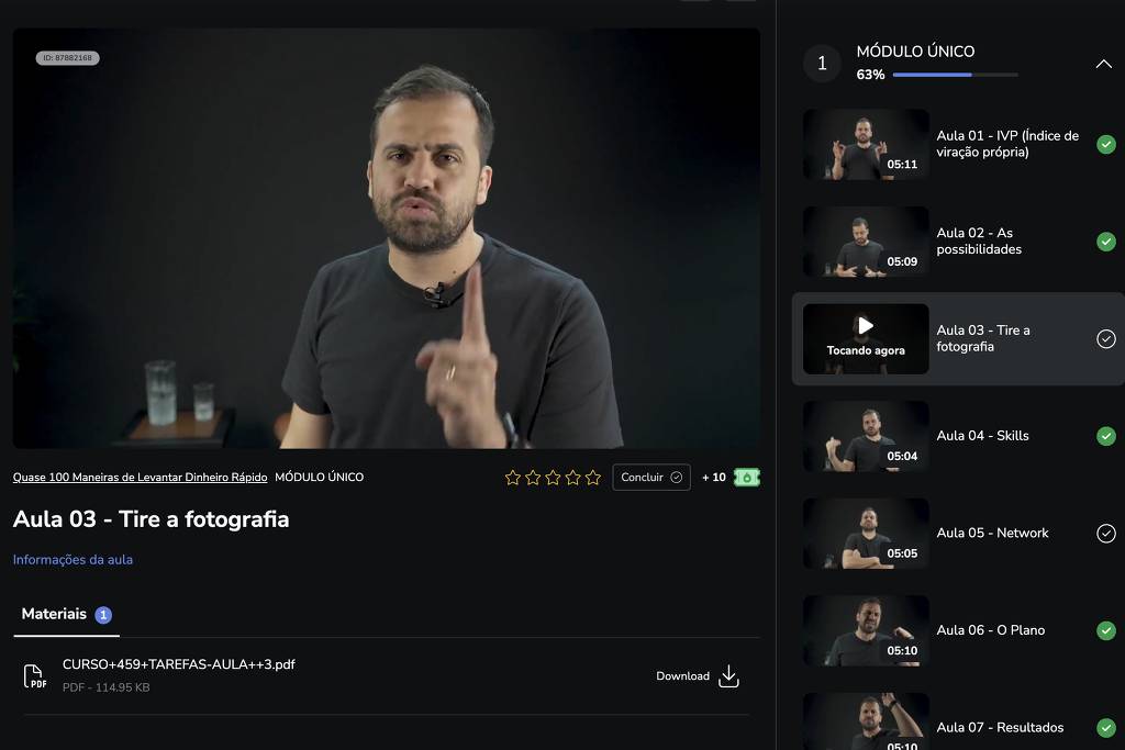 Essas dicas fazem parte do curso on-line de oito aulas “Quase 100 Maneiras de Levantar Dinheiro Rápido para Comprar o que Quiser”, de Pablo Marçal, que a reportagem da Folha adquiriu e completou nesta semana.