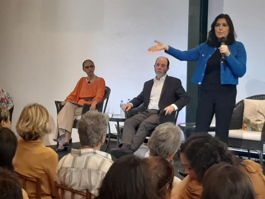 A senadora Simone Tebet (MDB), a deputada eleita Marina Silva (Rede-SP) e o ex-presidente do Banco Central Armínio Fraga se reuniram na noite de ontem com eleitores que estão indecisos no segundo turno para tentar convencê-los a votar no ex-presidente Luiz Inácio Lula da Silva (PT) contra Jair Bolsonaro (PL).