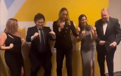 Não foi a primeira vez que Milei replicou a dança de Trump. Em setembro, durante a Cúpula de Investidores da Cpac no resort Mar-a-Lago, na Flórida, ele também fez os passos ao lado do líder americano. Na mesma viagem, Milei tornou-se o primeiro chefe de Estado da América Latina a se reunir com Trump após sua vitória nas eleições dos EUA, posando para fotos ao lado do republicano e do bilionário Elon Musk.