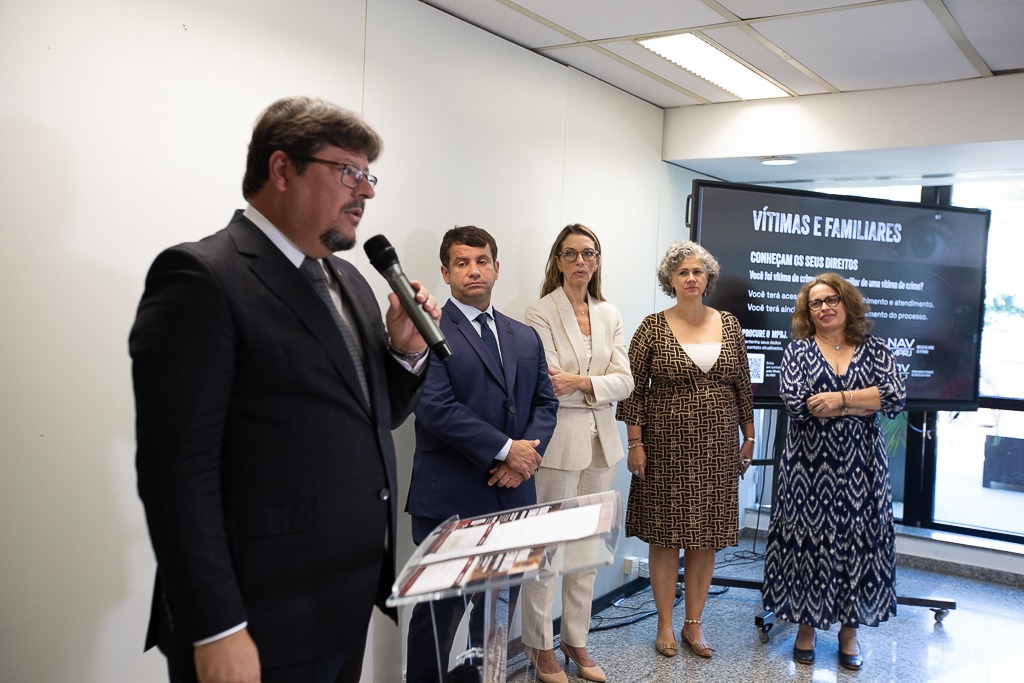 O procurador-geral de Justiça, Luciano Mattos, inaugurou, nesta segunda-feira (05/06), a estrutura que abrigará o Núcleo de Apoio às Vítimas (NAV/MPRJ), inserida no âmbito da Coordenadoria de Promoção dos Direitos das Vítimas (CPDV/MPRJ). O espaço, que funcionará no 3º andar do edifício-sede do Ministério Público do Estado do Rio de Janeiro, foi idealizado para proteger e garantir apoio humanizado às vítimas de infrações penais, atos infracionais, desastres naturais, calamidades públicas e graves violações de Direitos Humanos, e de seus familiares.