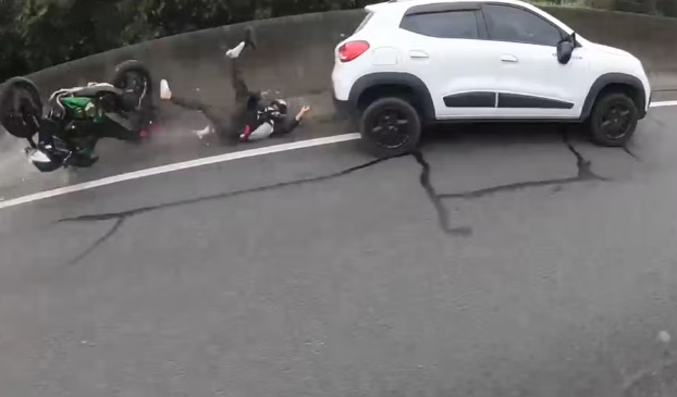 Um homem de 37 anos foi detido em flagrante por dirigir sob efeito de álcool após se envolver em um acidente na Rodovia Anhanguera, em Vinhedo (SP). Imagens capturadas por uma câmera registraram o momento em que o carro por ele conduzido colide com um motociclista na via.