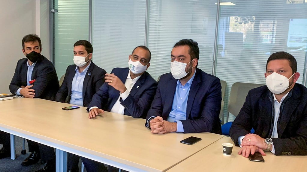 Os secretários da Casa Civil, Nicola Miccione, de Desenvolvimento Econômico, Vinicius Farah, e do Ambiente e Sustentabilidade, Thiago Pampolha, também participaram da visita à fábrica da Poma.